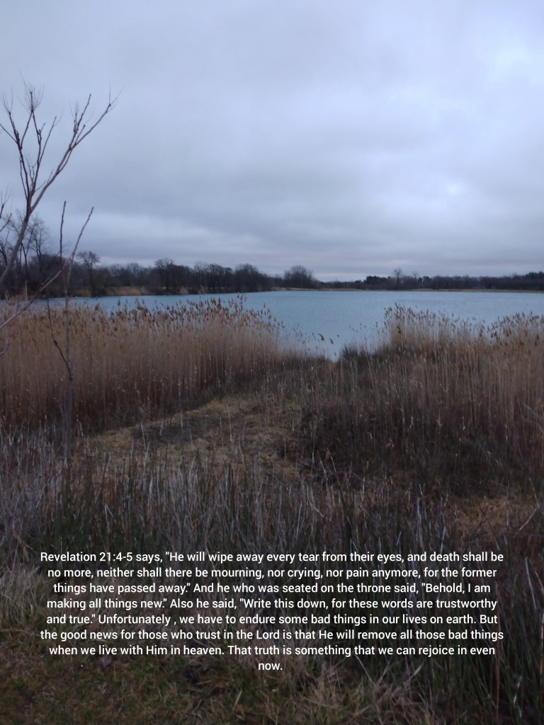 Posted byJim GleasonPosted inUncategorizedTags:allthings, bible, crying, death, formerthings, god, heaven, mourning, new, pain, passedaway, Revelation21, tears, true, trustworthy, wipeaway