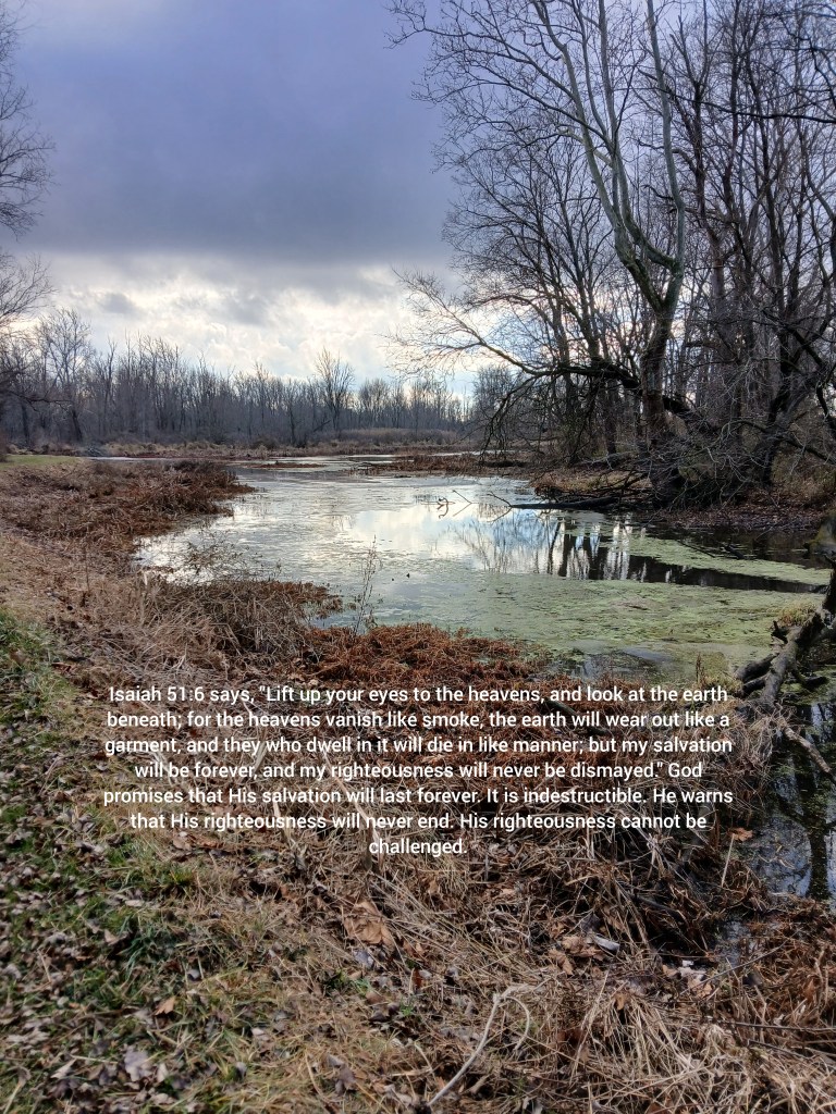 Posted byJim GleasonPosted inUncategorizedTags:bible, earth, forever, heavens, Isaiah51, righteousness, salvation, undismayed, vanish, wearout