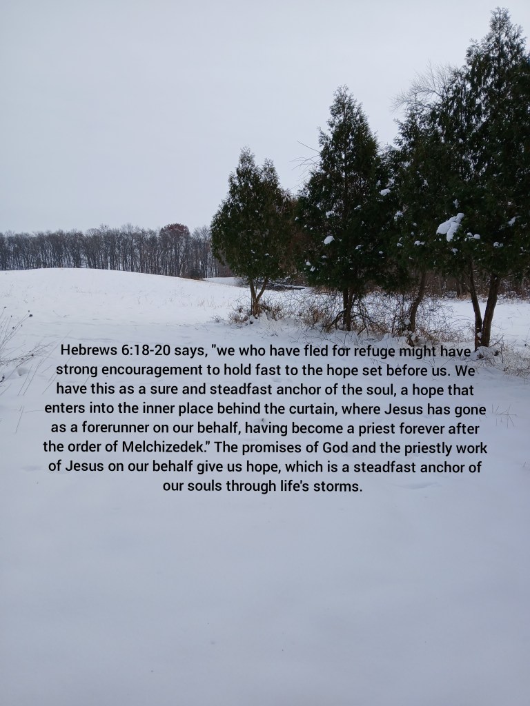 Posted byJim GleasonPosted inUncategorizedTags:anchor, bible, encouragement, forever, Hebrews6, highpriest, holdfast, hope, jesus, refuge, soul, steadfast