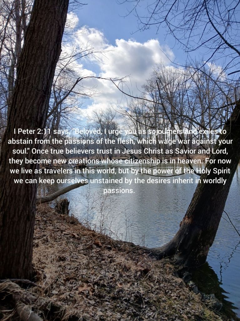 Posted byJim GleasonPosted inUncategorizedTags:abstain, bible, exiles, flesh, ipeter2, passions, sojourners, soul, urge, wage, war