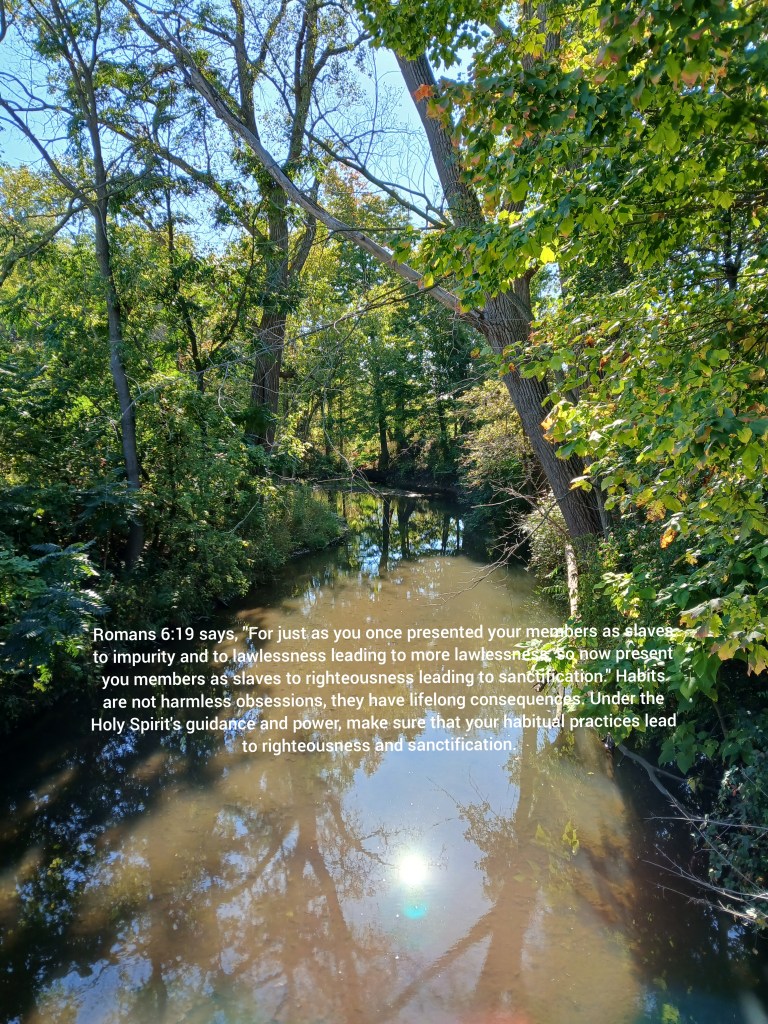 Romans 6:19 says, “For just as you once presented your members as slaves to impurity and to lawlessness leading to more lawlessness, so now present you members as slaves to righteousness leading to sanctification.” Habits are not harmless obsessions, they have lifelong consequences. Under the Holy Spirit’s guidance and power, make sure that your habitual practices lead to righteousness and sanctification.