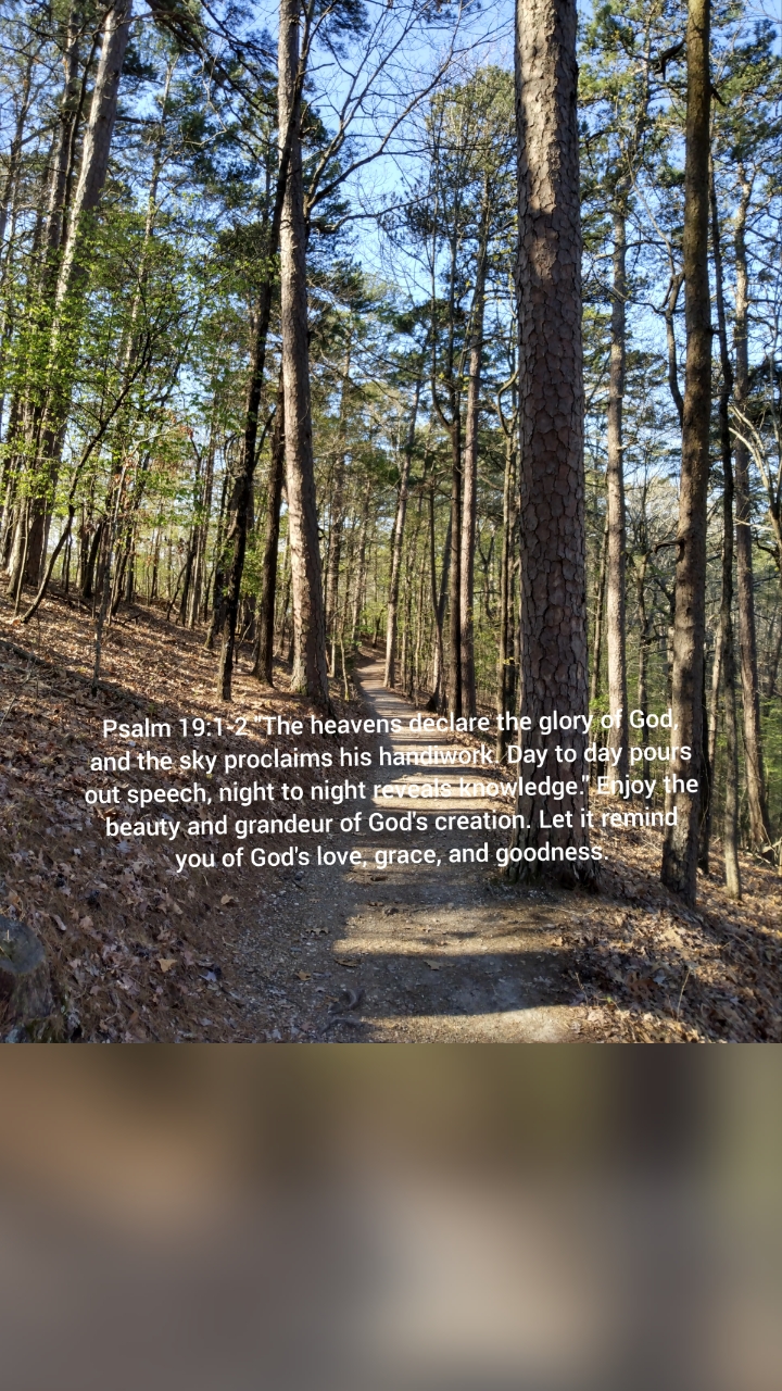 Psalm 19:1-2 says, “The heavens declare the glory of God, and the sky proclaims his handiwork. Day to day pours out speech, night to night reveals knowledge.” God created all things and His creation reveals much about Him. He has given us the ability and privilege of enjoying the beauty and grandeur of the creation. Let it speak to you of God’s love, grace, and goodness. Let nature teach you true knowledge of its Creator.