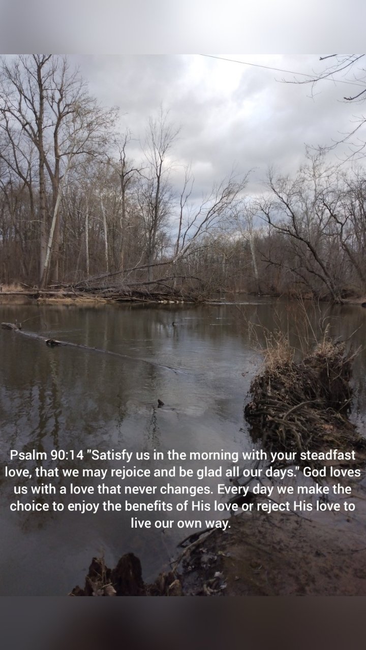 Psalm 90:14 says, “Satisfy us in the morning with your steadfast love, that we may rejoice and be glad all our days.” How would our days be different if we started by considering God’s love for us. Remembering we are loved would change our outlook and attitudes. Instead of dragging ourselves to work or school we can rejoice in what God has for us in the new day. We will have sense of expectation looking for God’s blessings in this day. Every morning we make a choice to enjoy God’s love and blessings or to reject Him to live the day our way. Make the right choice today!