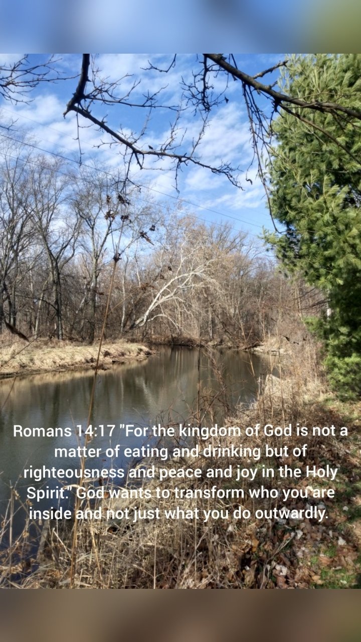 “For the kingdom of God is not a matter of eating and drinking but of righteousness and peace and joy in the Holy Spirit.” Romans 14 :17