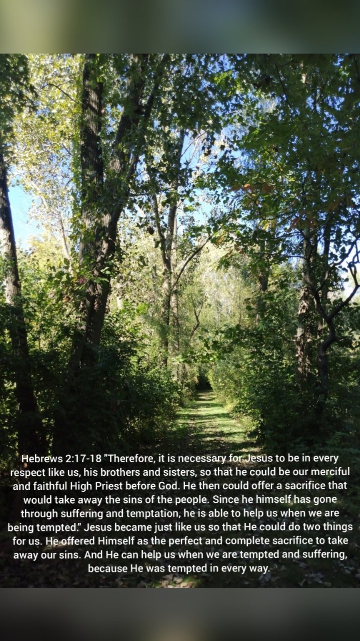 Hebrews 2:17-18 says, “Therefore, it is necessary for Jesus to be in every respect like us, his brothers and sisters, so that he could be our merciful and faithful High Priest before God. He then could offer a sacrifice that would take away the sins of the people. Since he himself has gone through suffering and temptation, he is able to help us when we are being tempted.”