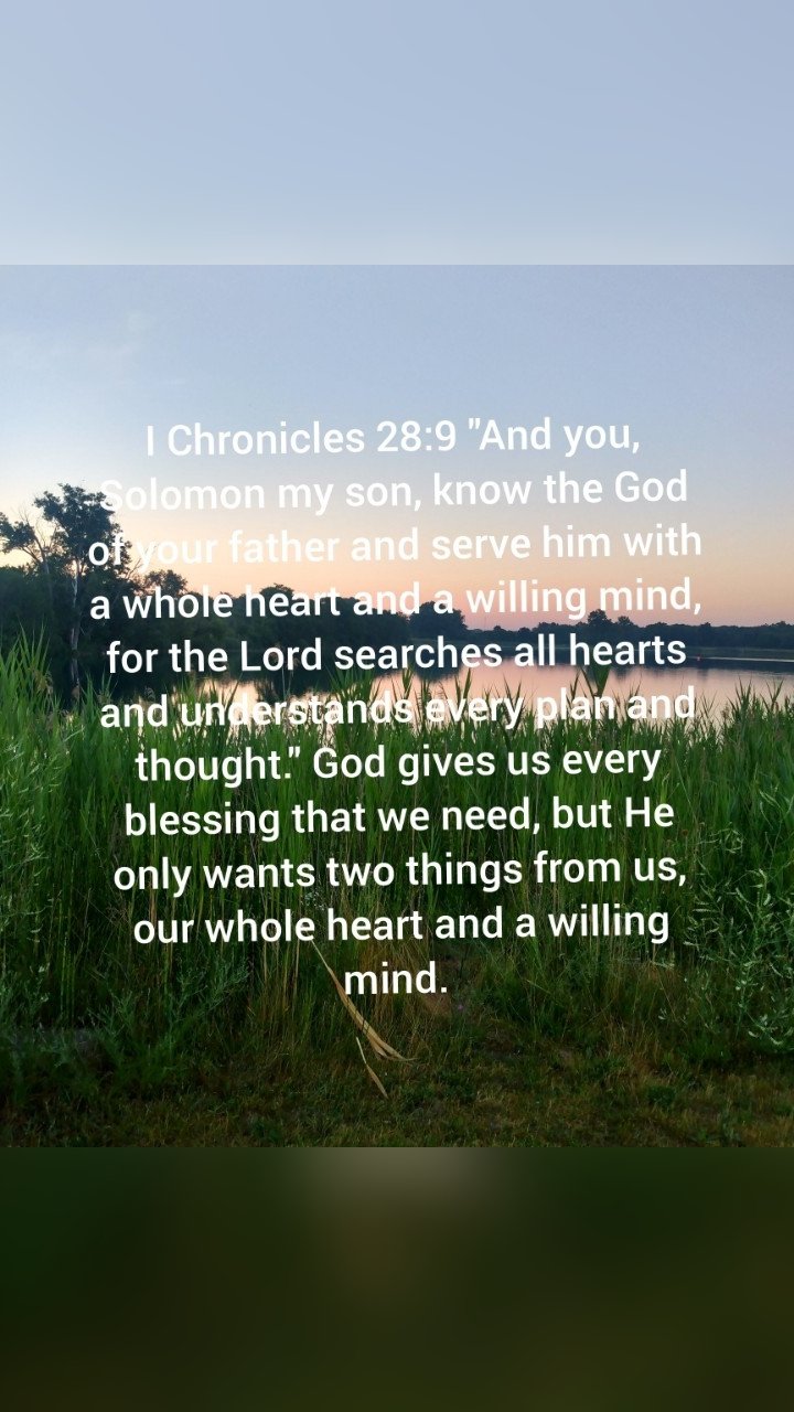 God gives us every blessing that we ever need, but He only requires two things from us, our whole heart and a willing mind. We cannot withhold a part of our heart, because that is not sincere love. We cannot keep a stubborn and rebellious mind because that is not true commitment. God hates a divided heart and a rebellious mind. But a fully committed mind and a heart of sincere love He will never turn away.