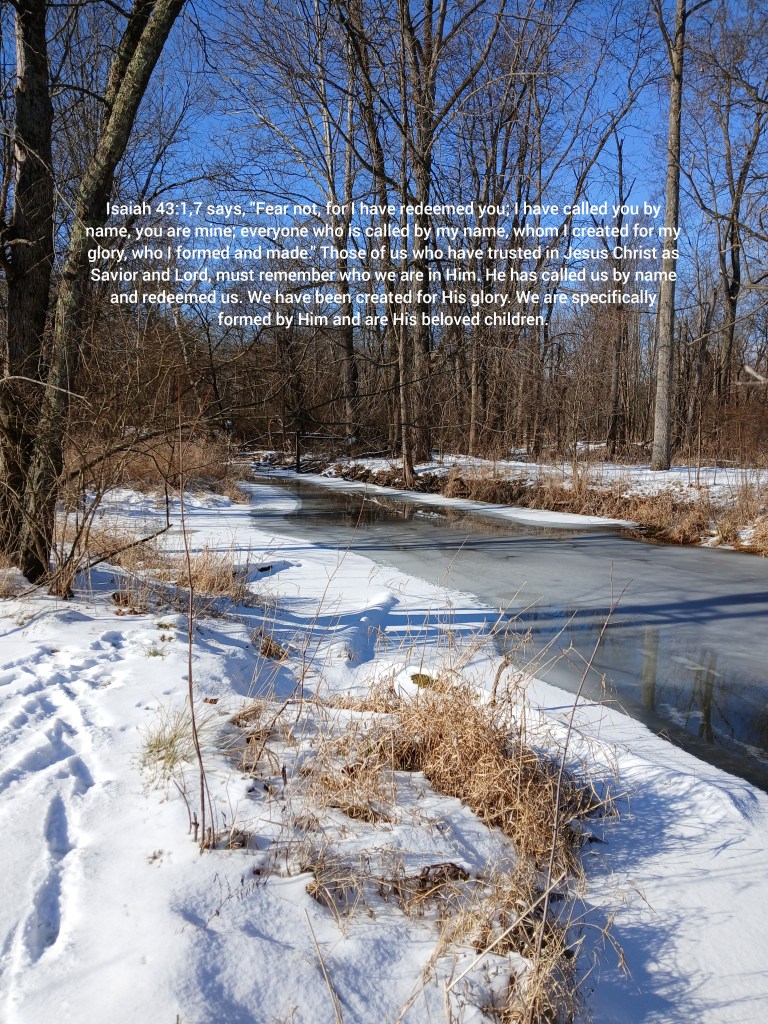 Isaiah 43:1,7 says, “Fear not, for I have redeemed you; I have called you by name, you are mine; everyone who is called by my name, whom I created for my glory, who I formed and made.” Those of us who have trusted in Jesus Christ as Savior and Lord, must remember who we are in Him. He has called us by name and redeemed us. We have been created for His glory. We are specifically formed by Him and are His beloved children.